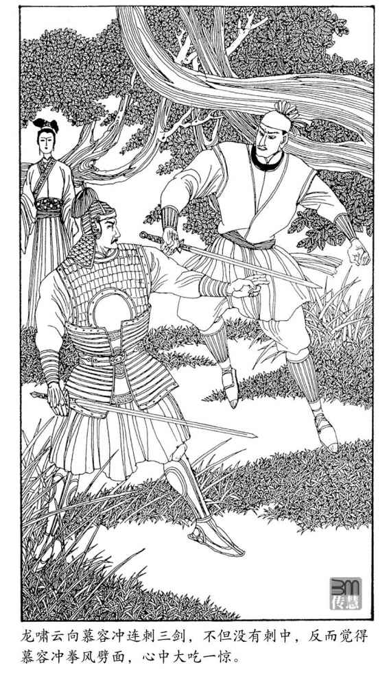 再说龙啸云与慕容冲相遇,连刺三剑,都给慕容冲避开,非但刺不中敌人,反觉敌人拳风劈面,大吃一惊!心道:宫廷中竟有这么厉害的高手!慕容冲见敌人剑招迅疾,功力深厚,也留了心。双拳化掌,展开了擒拿手法,拦阻勾拿,龙啸云见势不佳,无心恋战,虚晃一剑,斜刺掠出,一名东厂卫士,手使虎头双头双钩,迎面疾绞,想把龙啸云宝剑绞住,夺出手去,哪知龙啸云的峨眉剑法,已到炉火纯青之境,在卫士包围之中,毫不慌乱,看见双钩绞到,宝剑一翻一卷,顿时把那卫士的五个指头,齐根削断!大喝一声,直冲出去!慕容冲武功虽高,但人多阻势,反而不便施展。龙啸云身形飘忽不定,在乱石堆中,拼命逃窜。